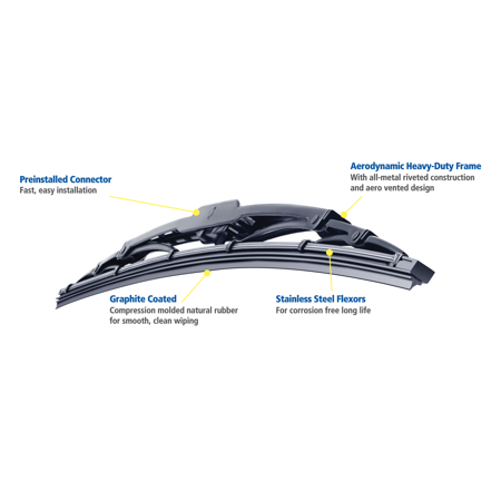 Get a clear view of the road ahead with Michelin High Performance Traditional Wiper Blades. High Performance wiper blades offer streak free quite wiping at an exceptional value. Durability tested to 750,000 wipes! Durability tested to 750,000 wipes; Fast and easy to install; Durable Blade Rubber for a clean & quiet wipe ... Read Full Source